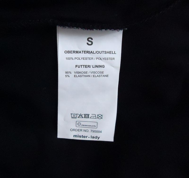 Склад тканини: верх- 100% поліестер, підкладка ( майка), низ і манжети - 95% віскоза. 5% еластан.