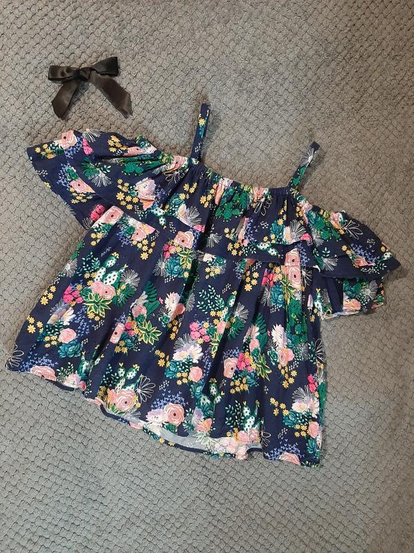 Яскрава літня віскозна футболочка або блуза чи маєчка. По плечам є резиночка і рюші у два ряди. Брительки не зйомні і не регулюються. Крій - трапеція. Тканина легенька, не парить і не тягнеться. Розмір на бірці 10-11 років, але за рахунок крою можна не тільки для дітей і підлітків, а і на розміри від XS до L. За додатковими питаннями і замірами звертайтесь у особисті повідомлення. 0100
