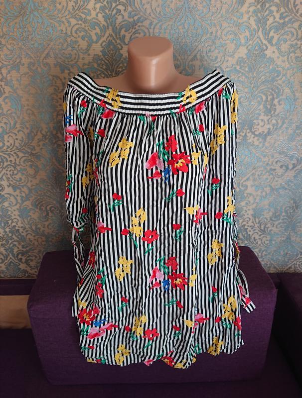 Красивая женская летняя блуза в цветы можно носить приспустив на плечи, ткань приятная вискоза отлично подойдёт для жары Размер 18 наш 50 /52/54 Замеры Длина 66 Пог 65 ❤️ Есть ещё много блуз размера XXXL+ СМОТРИТЕ В МОИХ ОБЪЯВЛЕНИЯХ https://shafa.ua/my/clothes?catalog=rubashki-i-bluzy