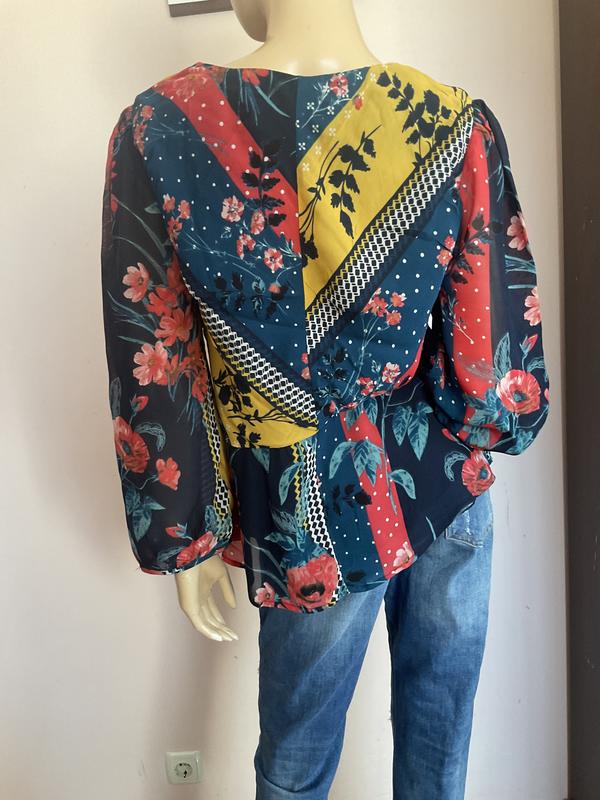 яскрава красива блузка. Підкладка перед і спинка. Не растегивается. Виміри в грудях 52см в талії 42см в стегнах 57см довжина 58см типу баска, замок в бічному шві. Рукав 51см по колу руки 21см в плечах 40см 25:3:24