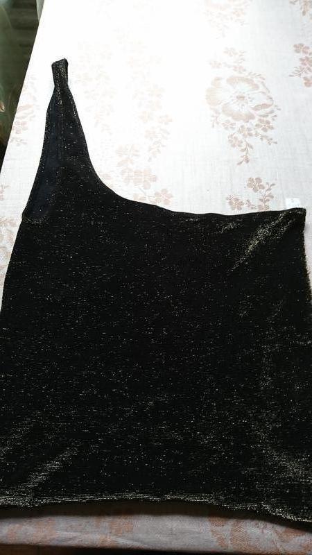 Жіночий нарядний топ Franzoni з люрексом на одне плече. Виробництво Італії. Розмір S/M Склад: 80% поліамід, 15% люрикс, 5% еластан. Стрейчевий. Колір чорний. В наявності жіночий одяг та взуття. Можливий самовивіз.