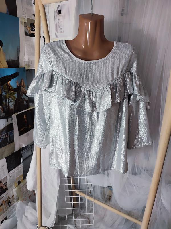 Срібляста блузка в паєтки від бренду Cubus Вільний крій , трапеція , круглий виріз , горловина з заду на спині на ґудзику , в середині підкладка , рукав 3/4 , оторочена шляркою на грудях та рукавах Розмір 36 За необхідності можу надати додаткові заміри та фото Ціна фіксована торг не доречний Укр пошта-оплата на карту Нова пошта-можливий наложний платіжних по передоплаті 100 грн