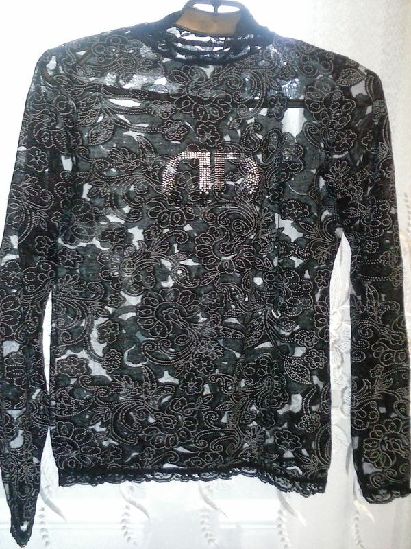 Гарний мереживний гольф підійде на розмір 44-46, на грудях букви з дрібних стразів сріблястого і чорного кольору. Заміри: ПОГ-42 см, ПОТ-40 см, довжина рукава-57 см, довжина гольфа-54 см, трохи тягнеться. Оплата на карту, доставкою Новою поштою, Укрпоштою.