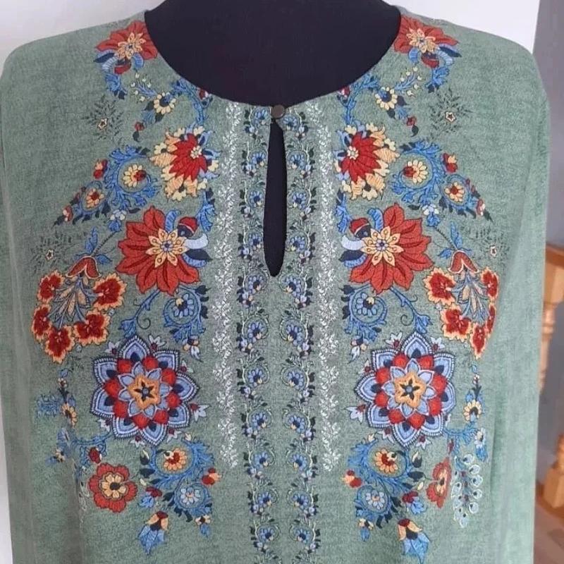 Дуже гарна блуза з 💯% віскози, нова, без бірки. Бренд ESPRIT. Розмір М-Л. Заміри: від пройми до пройми-51 см., довжина по спинкі-69 см., довжина рукава-62,5 см. Крій рівний.