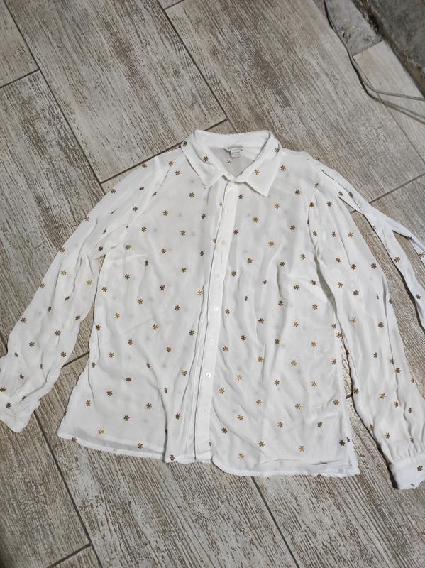 Женственная прозрачная блуза свободного кроя.Сама нежность.Ткань, лёгкая,струящаяся, к телу приятная,не жаркая.Вискоза,по структуре похожа на шифон.В живую 👍.Сзади на вороте имеется пуговка на которой крепится лента.Ее можно носить традиционно как бант,можно как поясок или как ленту на волосы,вот такой бонус для фантазий 😉.Как оверсайз подойдёт XS/S/М.Но ориентируйтесь на замеры:плечи 42,рукав 58,ПОГ 53,длина 64.Одета на мои параметры:рост 1,68,грудь 95,талия 80,бедра 100(ношу М/Л).В идеале,без нюансов.Есть много разных рубашечек, блузочек, и не только , пишите подберу по вашим параметрам. От 3-х доставка Укрпочтой за мой счёт . Удачных приобретений 😊!