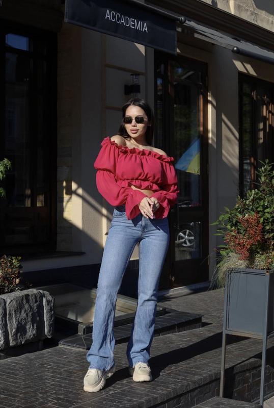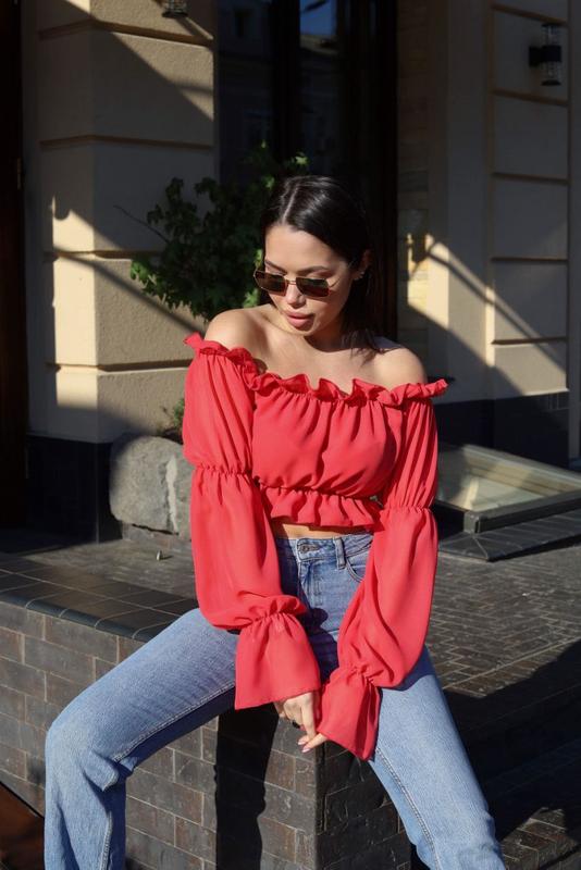 Красива легка блуза з креп-шифону яскравий насичений колір розміри 42 44 46 48 наявність будь-ласка