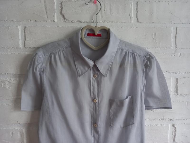 Легка бавовняна блуза Prada, блідо-блакитного кольору, тонка напівпрозора бавовна, розмір S М, в ідеальному станіПГ - 50 см, ШП - 39 см, довжина рукава - 19 см, довжина - 67 см