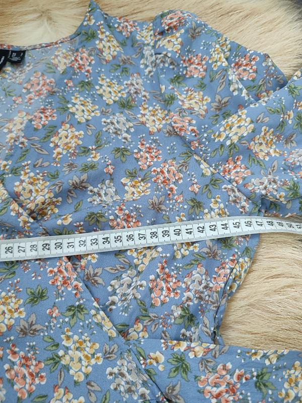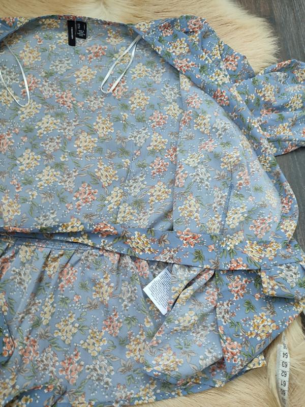 Красива небесно-блакитна блуза на запах у яскравий принт червоні квіти hobbs