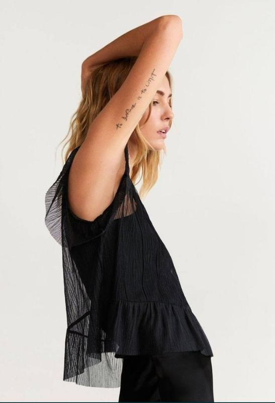 Блуза Mango вільного крою, підійде на розмір XS-S. Бірки зрізані, але жодного разу не носилась. На місці бірки ззаду вгорі залишився маленький шов (останнє фото), але він взагалі непомітний. Підійде як доповнення до сукні, топу, боді