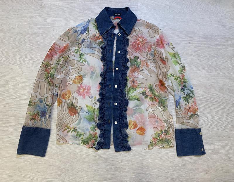 блуза в квітковий принт з джинсовими вставками Otto Kern, M/L стан ідеальний Додатково надам заміри по необхідності. Доставка: Працюю по передплаті або безпечна оплата шафа. Відправка: Укрпоштою Новою Поштою Міст Експрес Розетка (відправка пт, нд) Звертаю Вашу увагу, одяг з магазинів стоку/second hand може мати відповідний запах магазину.