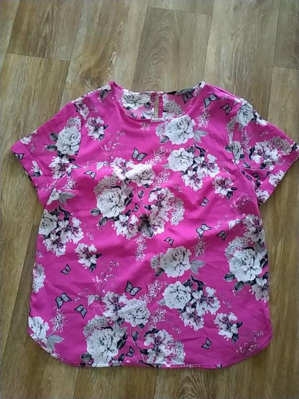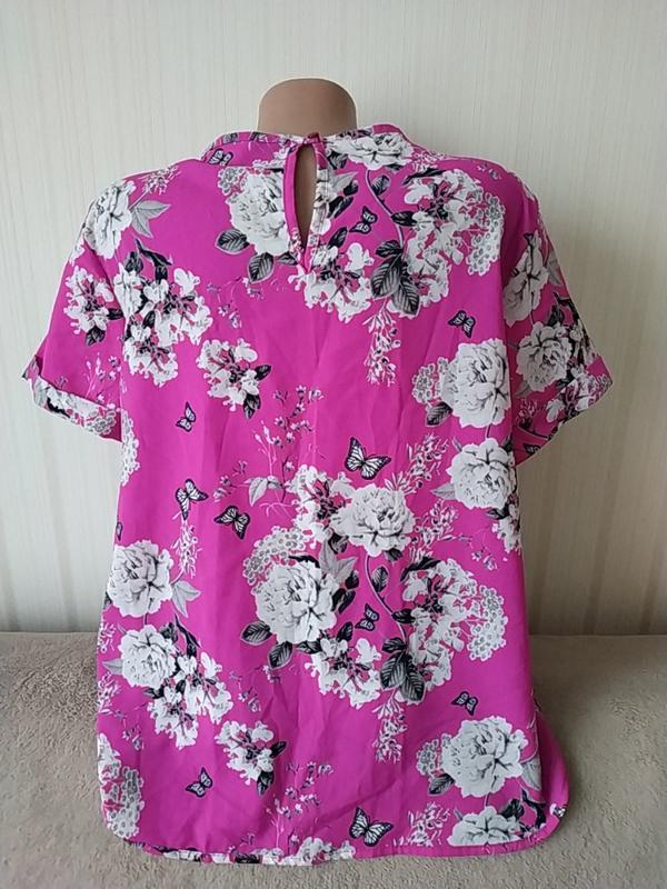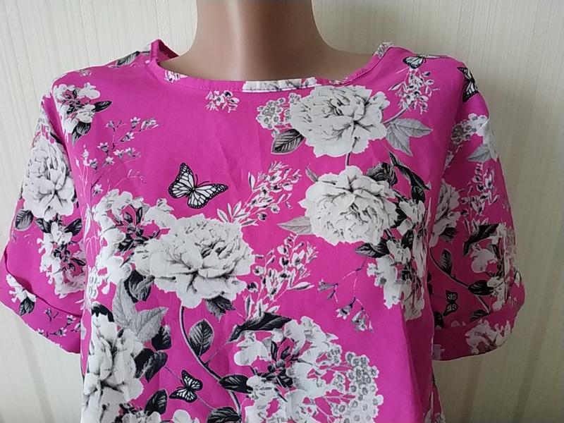 блузка яскрава, принт квіти і метелики, довжина 64 см, пог 51 см, побіди 53 см