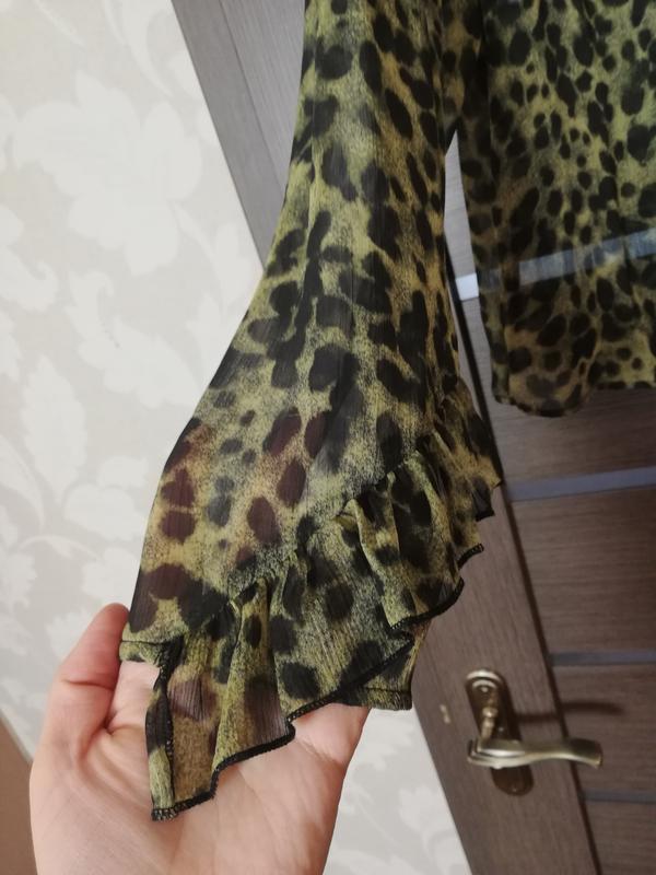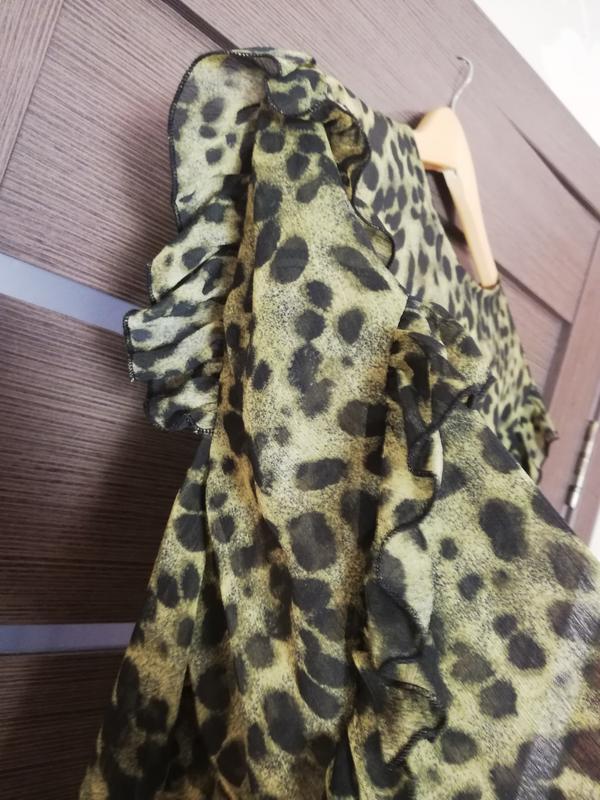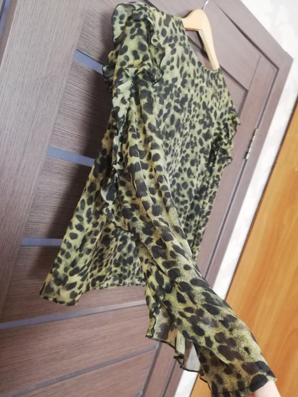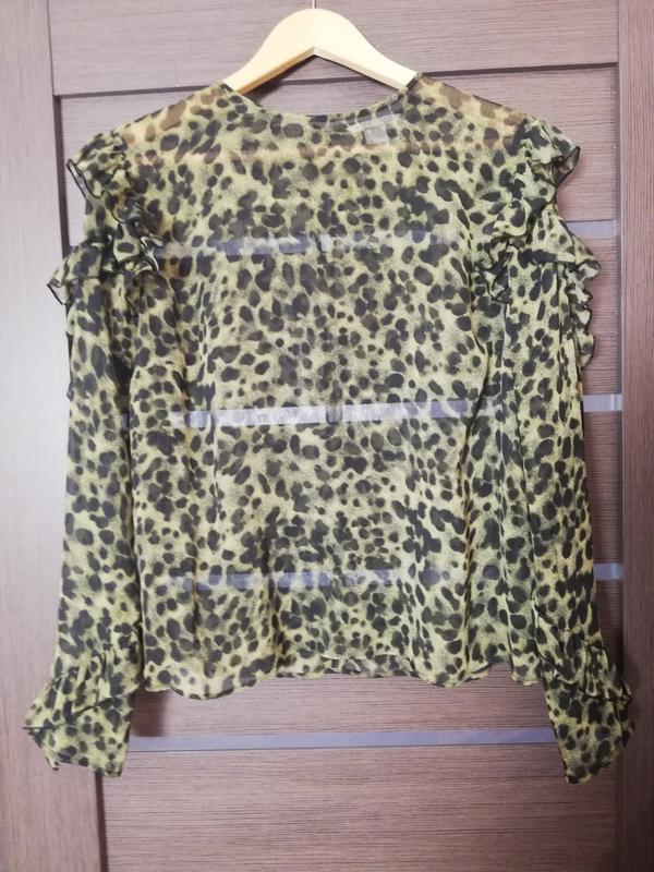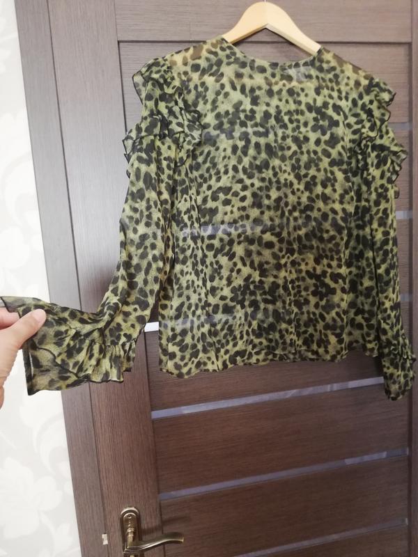 Ефектна брендовий блуза з милими рюшами H&M, анімалістичний принт, хіт сезону, абсолютно нова, в живу ще гарніше ніж на фото, гарно виглядає коли сидить не в притик. ПОГ - 58 див., Плечі - 42-44., Довжина - 51 див., Рукав - 61 див. Підписуйтесь на мої оновлення брендового товару, ціни Вас порадують.