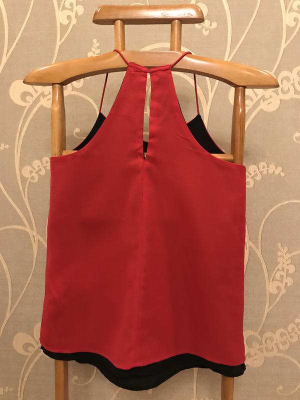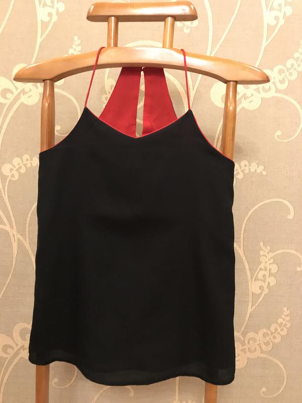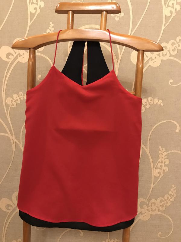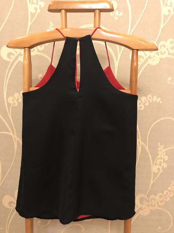 Пропоную вашій увазі дуже красиву і стильну двосторонню блузку: з одного боку-чорна, з іншого боку-червона..можна носити по-різному (в живу виглядає набагато цікавіше). Фірма MISS E-VIE. Розмір 6. Склад: 100% полиестер. Нова. ПОГ 41-42, довжина-62, ширина по низу-47. УВАГА!!! При купівлі три і більше моїх речей-безкоштовна доставка посилки Новою поштою. Вдалих покупок.