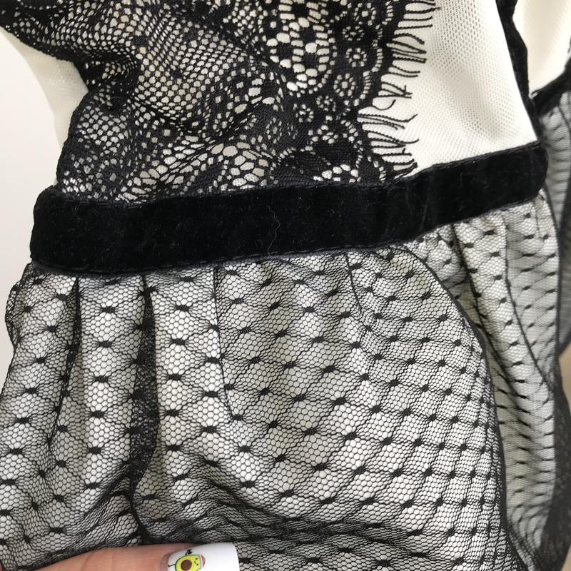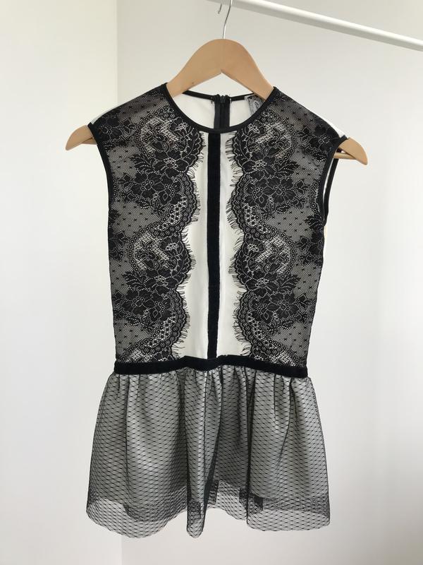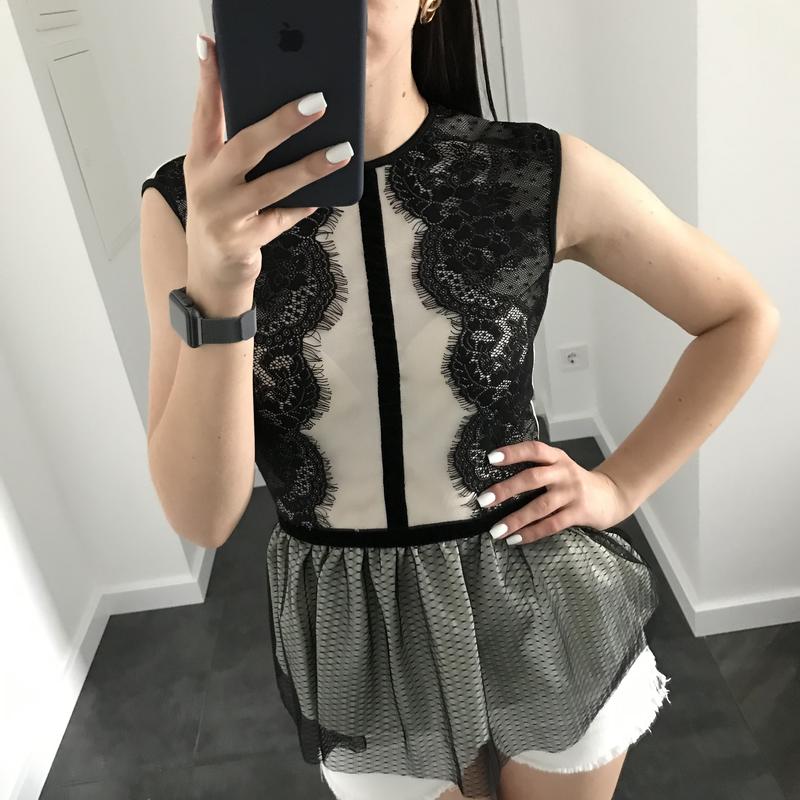 Мереживна італійська блуза/топ з фатину з баскою. Розмір xs/s {надіта на S}. Трохи просвічується на спині і грудях, як і на фото. Є маленький дефект, який з легкістю прибирається в ательє. Подробніше в особистих повідомленнях.
