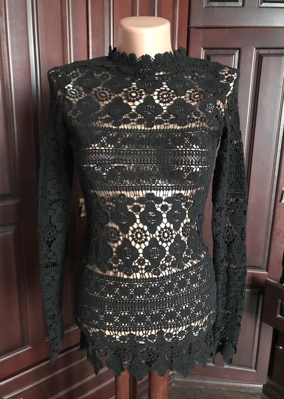 Чорна мереживна блузка Zara XS-S Рукав 65 Довжина 70 Талія 65 Шир по плечах 28