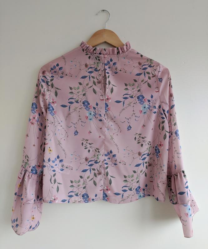 Ніжно-рожева блузка в квітковий принт, актуальні рукава волани. Стан - ідеальний, як нова. Посадка вільна , розмір 34, заміри: ПОГ - 48, рукав - 57, довжина - 53.