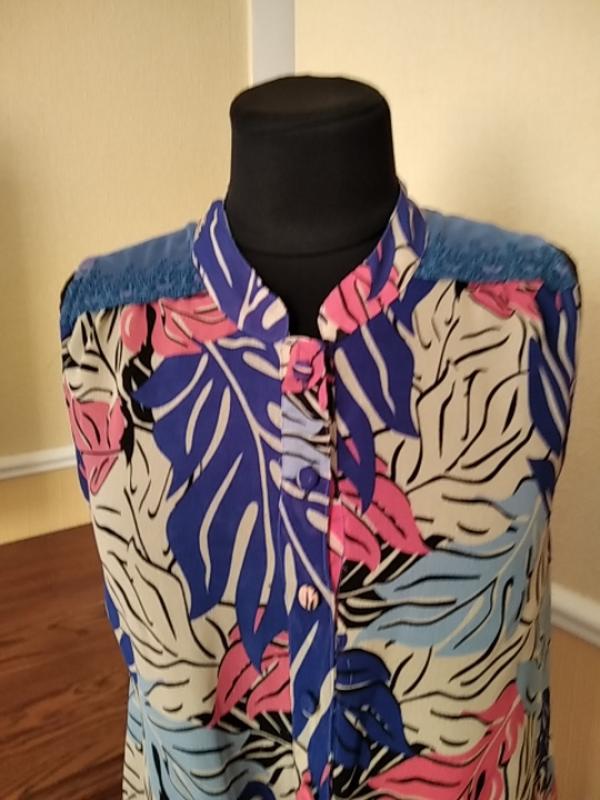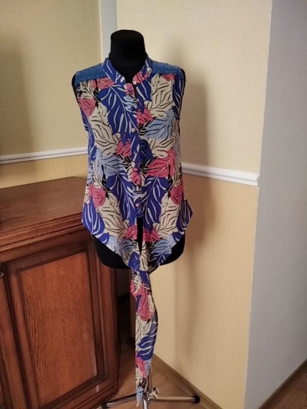 (Бл112) Річна шифонова блузка. Бренд Chemistry. Заміри: плече - 9см, ПОГ - 45см, ПОТ -49см, ПО низу - 56 см, довжина- - 54-64 див.