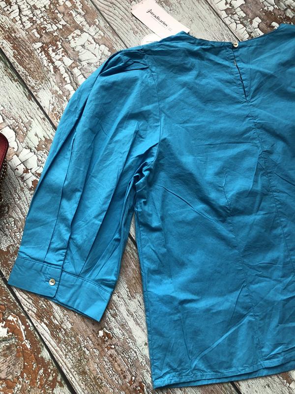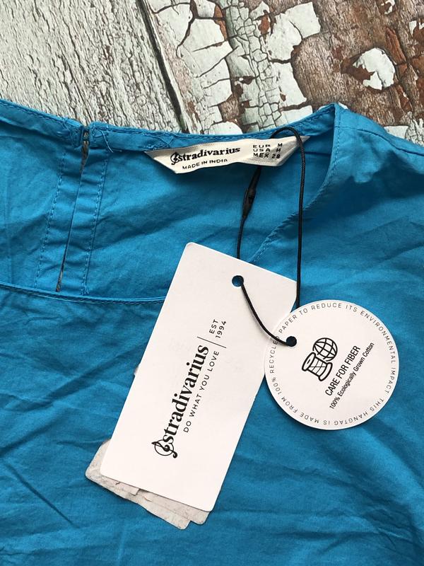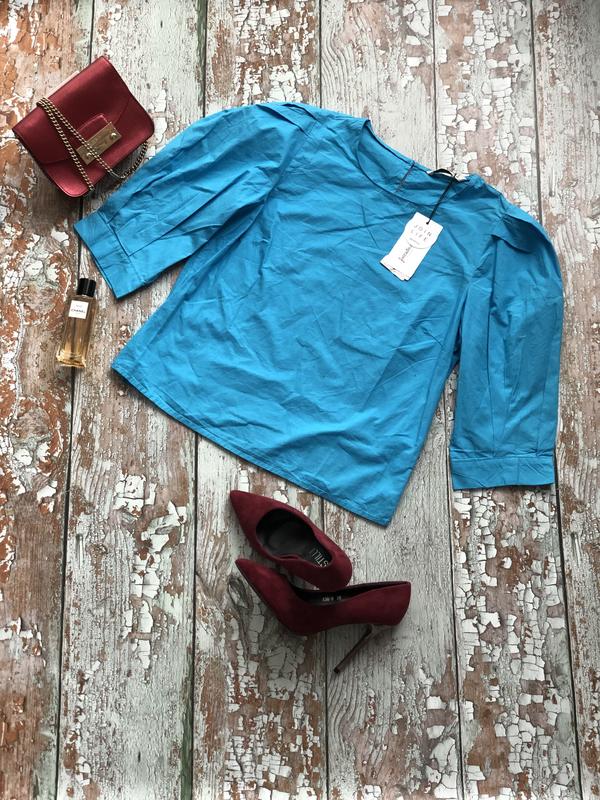 Коттоновая блуза Stradivarius вільного крою з об'ємними рукавами три чверті. Ззаду на спинці на пуговичке, як і манжети на рукавах. Дуже яскравий блакитний колір. Розмір М/28/38. Абсолютно новий, з біркою. Всі виміри вишлю за запитом.