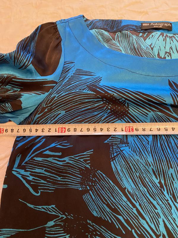 Продам фірмову дорогу блузку з натурального шовку. Фірма Marks&Spenser. Дуже красиво переливається в блакитних і зелений відтінки. Стан ідеальний. Розмір 10, може бути S-M, всі заміри на фото. Перешлю будь поштою (Укрпоштою, Новою, Джастін) при повній оплаті на карту Привата. Наложкой відправляю при передоплаті в 70 грн.