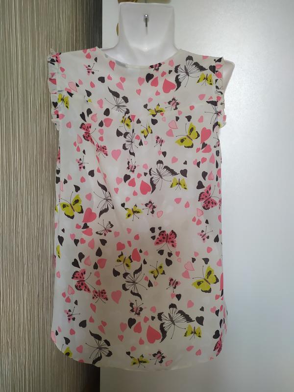 легка, повітряна,романтична блуза у відмінному стані.тканина м'яка і ніжна(хоч і поліестер), в ній не жарко.на гудзиках спереду.
