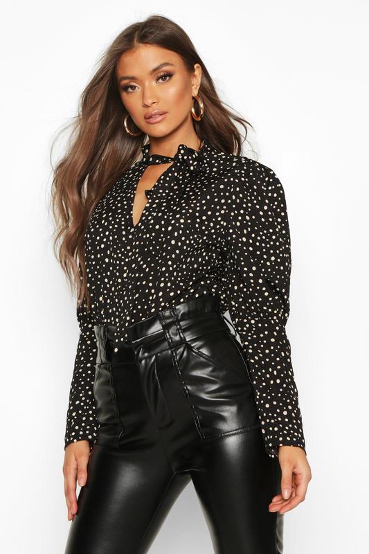 Блуза в горошок на одну руку рукав стильно ошатна легка з воланом boohoo