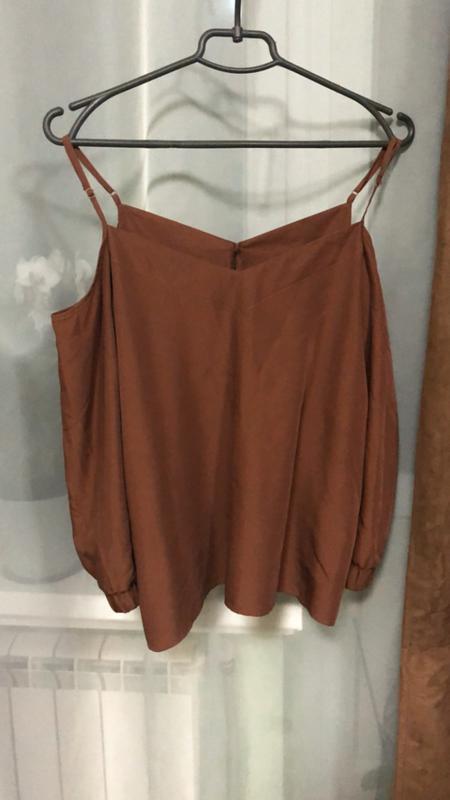 Блузка жіноча, коричневого кольору на брительках, які що регулюються та з довгим рукавом, за рахунок поєднання боительок і рукавів, блузка виглядає дуже стильно і гарно