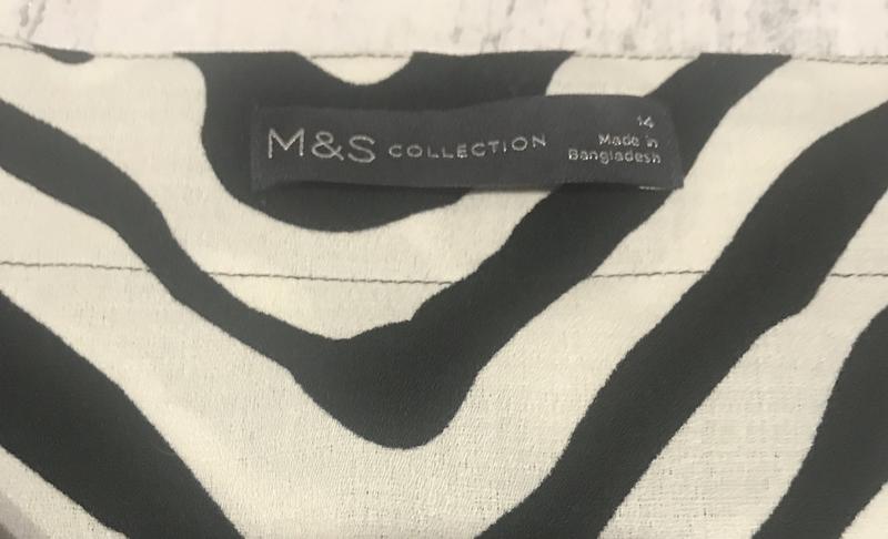 Блузка фірми M&S, розмір l, xl Склад: 100%~ поліестер Довжина рукава-59 см, Напівобхват грудей-54 см Довжина-63 см Є маленький дефект - невелика затягування, яку практично не помітно ( є фото 5)