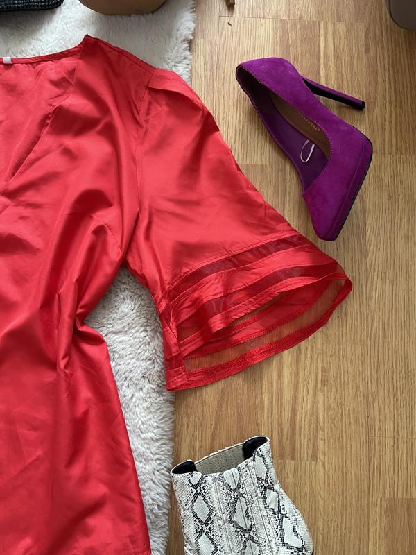 Нова яскраво червона блуза під шию з глибоким вирізом з поясом by very