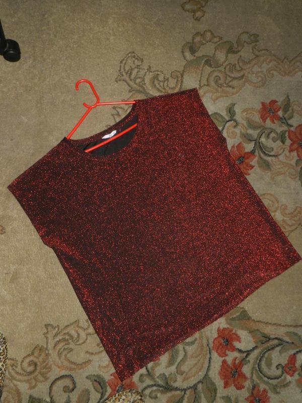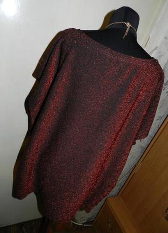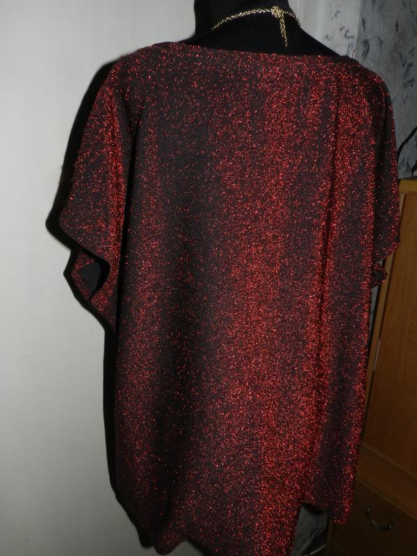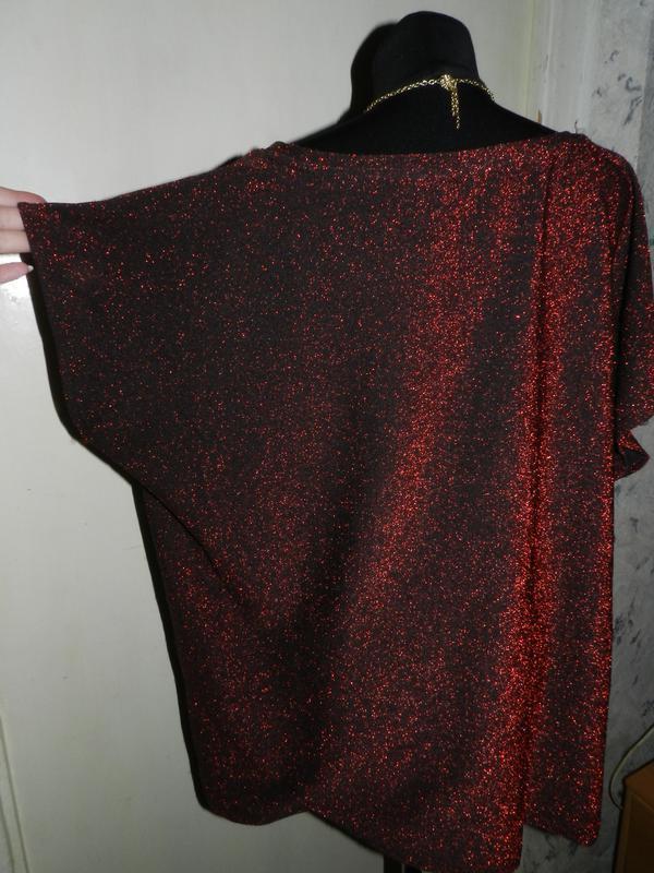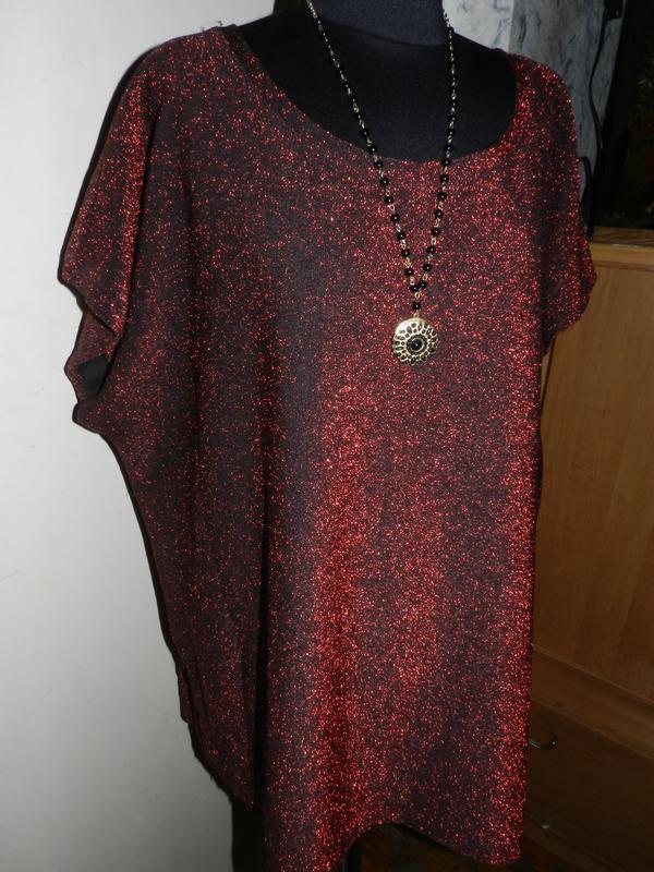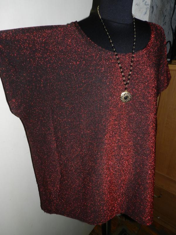 Нарядная,трикотажная,стрейч,мерцающая:красная с чёрным блузка,большого размера,шведского бренда ELLOS.Размер на бирке 46/48,Gb20-22,но ориентируйтесь по замерам: