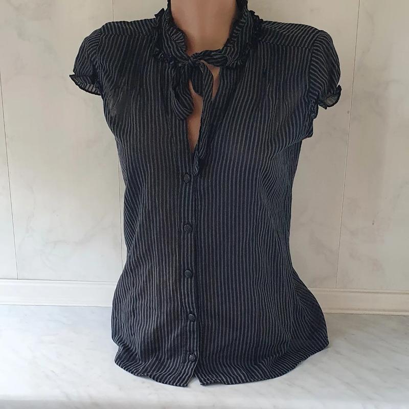 H&m швеція красива блуза жіноча кофточка стрейчева чорно-сіра розширена без рукавів ошатна