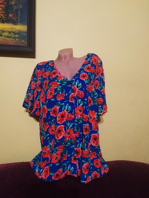 Неймовірно красива білі-синя блузочка в білі-червоні маки. на гудзиках. Віскоза штапель. Легесенька, не жарка, холодити. НОВЕСЕНЬКА!!!! В наявності два розміри: розмір 8, наш - 40-42. довжина - 63, ОГ - 90, ПРО - 95. розмір 20, наш - 52-54. довжина - 63, ОГ - 120, ПРО - 125