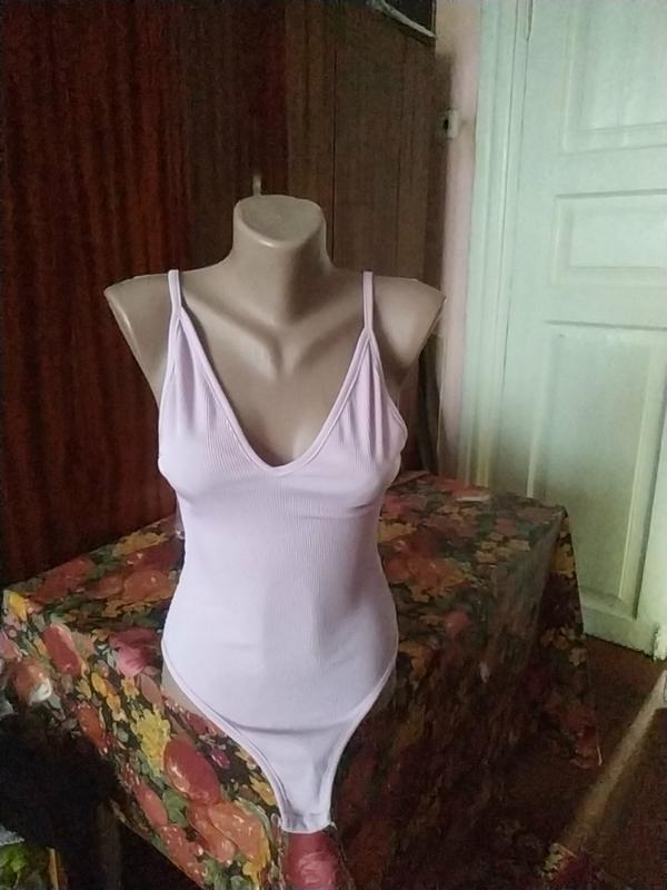 дуже гарний ніжно бузковий боді з V-образнымвырезом і напіввідчиненої спинкою.Можна носити і як купальник.розмір хс,с. опис стан відмінний довжина в застебнутому вигляді 6 ПОГ 36