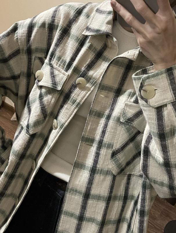 Цупка сорочка із льону та котону Zara. Тримає форму, не тонка. По бірці позмір L (на фото одягнено на S). Заміри спущене плече від шва до шва 55 см. , рукав від шва плеча 51 см, рукав від горловини 73 см, від шва до шва під рукавами 70 см, довжина по спині 67 см. Стан нової, одягнена один раз