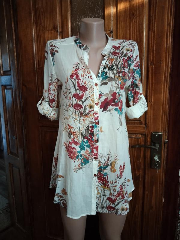 Невагома бавовняна тканина дуже красиві квіти,як живі.,рукавчик 3/4,можна робити ще корочеплечі 36смп.о.г.50смп.о.т.46смп.о.б.53смдовжина 74смдовжина рукава 45см-28см.додаткова інформація за запитом.