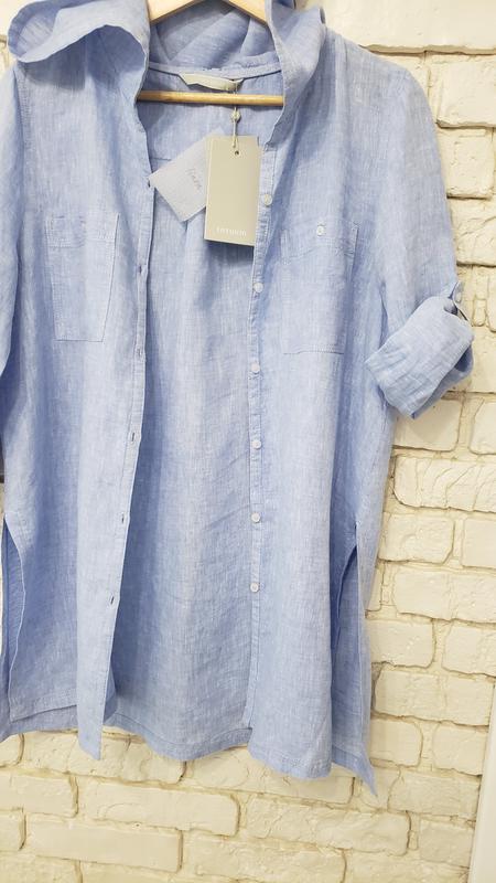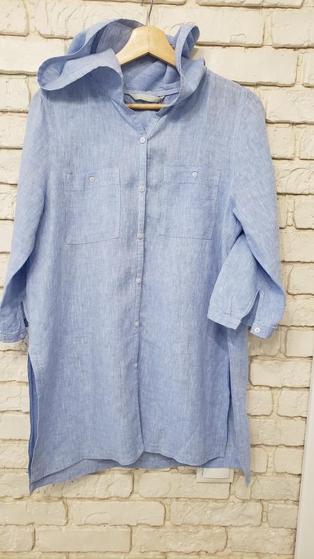 Ідеальна блакитна сорочка жіноча. сорочка з льоном. льняна сорочка на літо.
