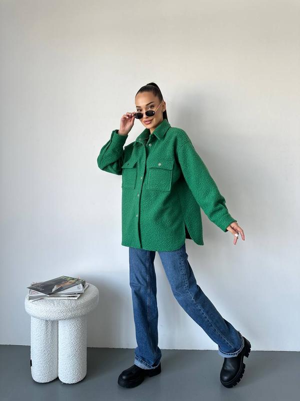 Куртка-сорочка арт. 1544Ціна: 850 грнМатеріал: шерсть букле Розміри: 42-46; 48-52;Кольори: фуксія, рожевий, зелений, сірий, чорний, бежевий, молочний, кемел