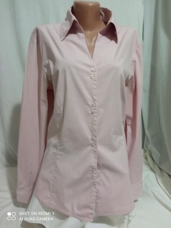 Фірмова класична жіноча сорочка блідо рожевого кольору, приталена. 100% котон.