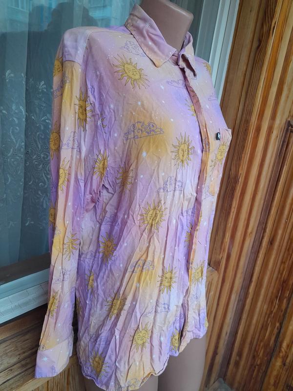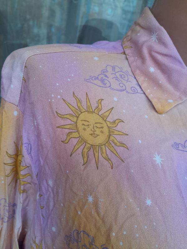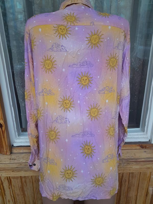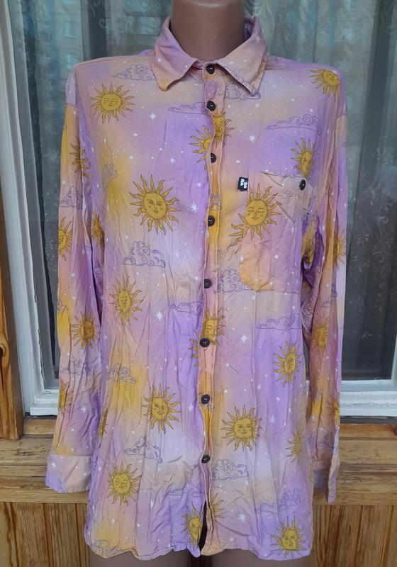 Стильна бавовняна сорочка з принтом Сонце Розмір МСтан чудовий Заміри: довжина 70, груди 52, бедра 50, плечі 48, рукав 60.