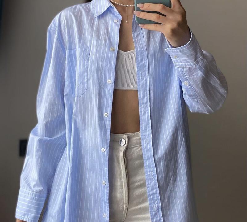 Блакитна оверсайз пряма рубашка, сорочка в смужку h&m