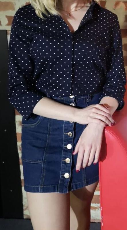 Сорочка темно-синя, принт горошок. Розмір 36, бренд Odji. Дуже якісна, стан ідеальний. Рукав 3/4