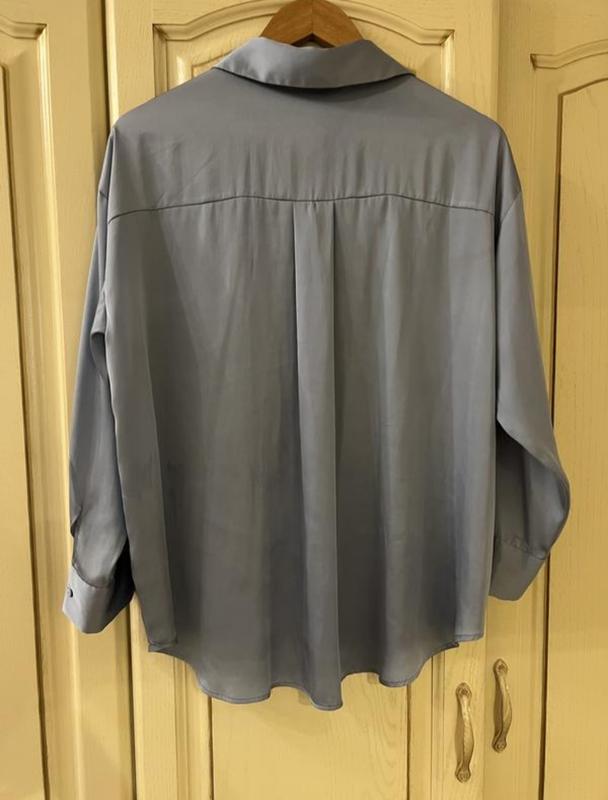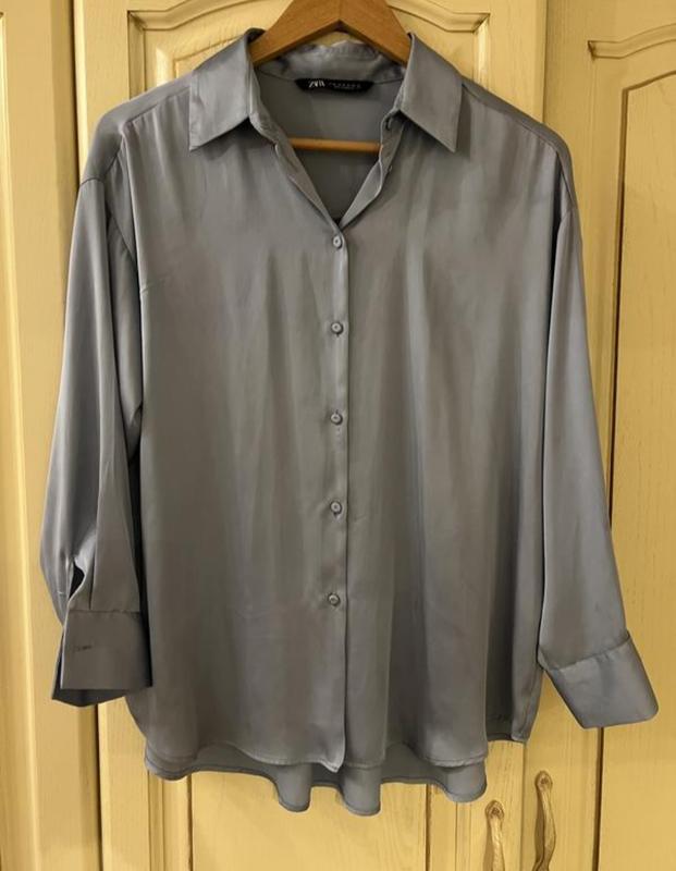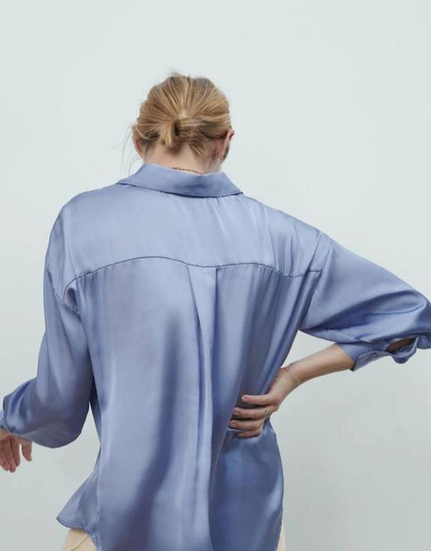 базова сорочка від Zara оверсайз на бирці М має вигляд вогню 🥰(Зараз блакитна) склад 100% поліестер має вигляд шовку, стан ідеальний підійде під будь-який образ легко лягати на штани джинси, навіть якщо заправлятися (погано спадає), заміри: 🌷довжина виробу 66 спереду/73 взаду см; 🌷НОГ 59см ; 🌷 довжина рукава 69 см від горловини❤️ плечі 55 см дивіться свої лоти 🌷