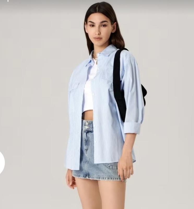 100% бавовнапростий крійкласичний комірдовгі рукавиопущена лінія плечейзастібка на ґудзикивізерунок у смужкурозрізи з боків