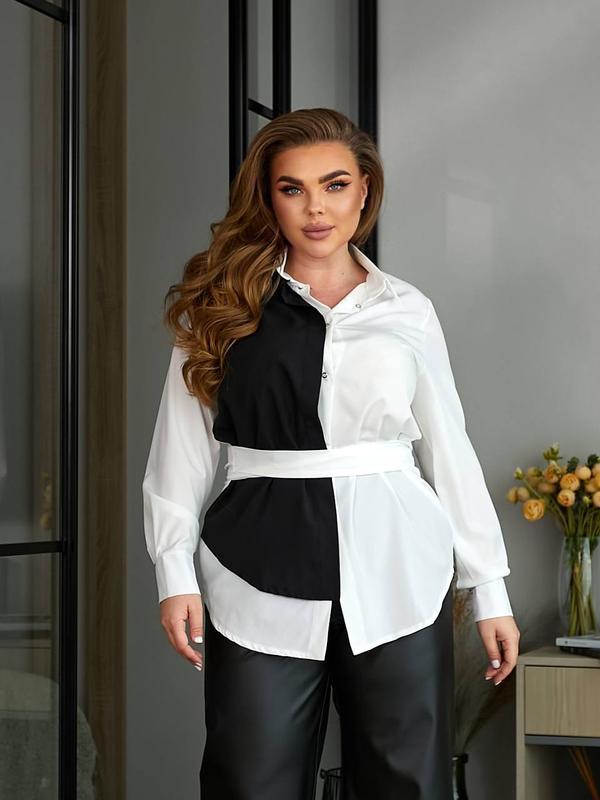 Сорочка чорно-біла з поясом, блуза жіноча, рубашка