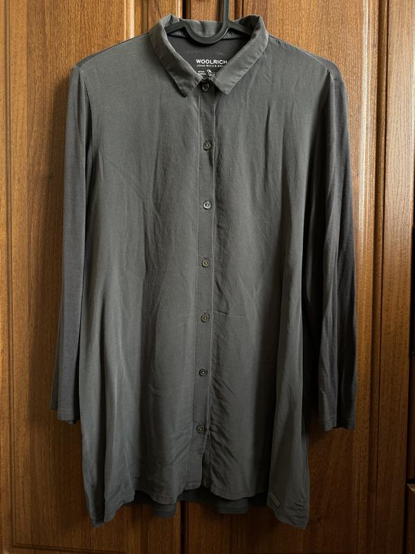 Шикарна шовкова блуза преміум бренду Woolrich, оригінал Гудзики та внутрішні шви брендовані. Гарнезний відтінок сірого Передня частина-100% шовк, задня частина і рукава-трикотаж (шовк+віскоза+еластан),трохи тягнеться Дуже комфортна найлегша річ, любителі бренду знають якість. Розмір М Плечі 39 ПОГ-47 Рукав 50 Довжина перед 66/по спинці-70см.