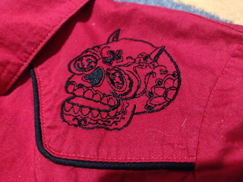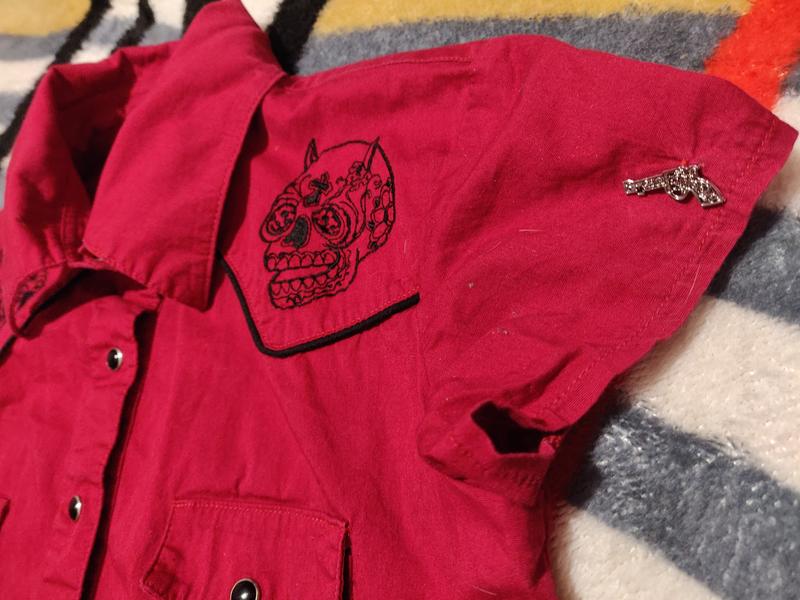 Вишивка черепи на плечах та хрест на спинці, металеві пістолети на рукавах