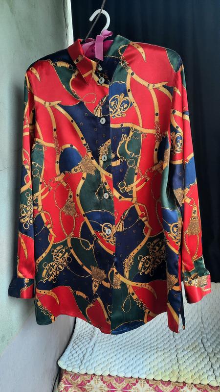 Сорочка в дуже хорошому стані. На рукаві є невелика затяжка, в носінні не видно зовсім за рахунок розцвітки. Тканина схожа на атлас,хоча вказана віскоза. Довжина-73см, пог-54см, плечі-40см, рукав-60см. По бокам розрізики. Дуже крута. Є відправка безпечною оплатою. Даю детальну інформацію про товар, тому відповідальність за вибір речі лежить повністю на Вас. Все, що Вас цікавить по замірам, нюансам, кольорам тощо, уточнюйте до здійснення операції. 👌-підписуйтесь і дивіться інші мої речі, оновлення щодня 👖👗👚