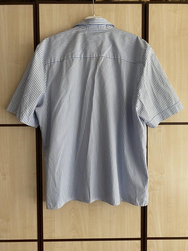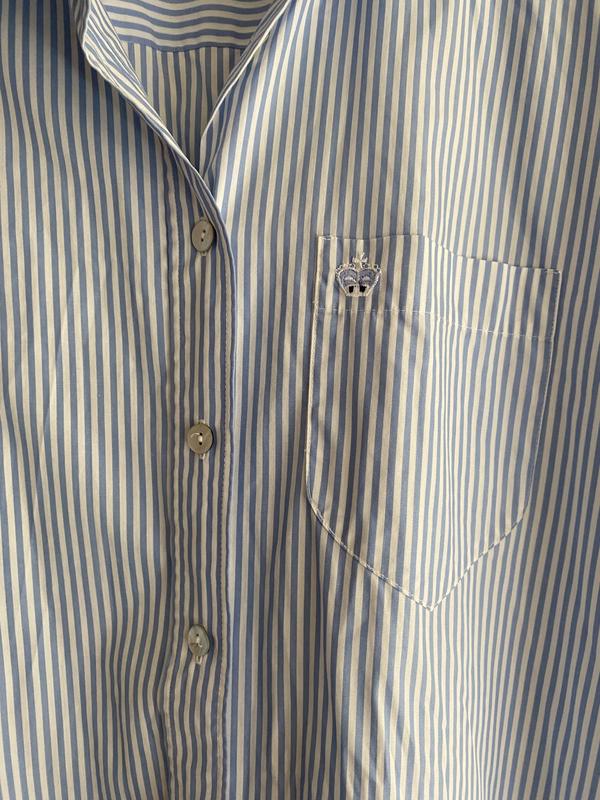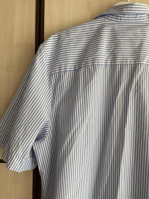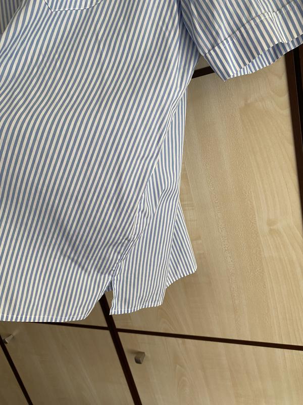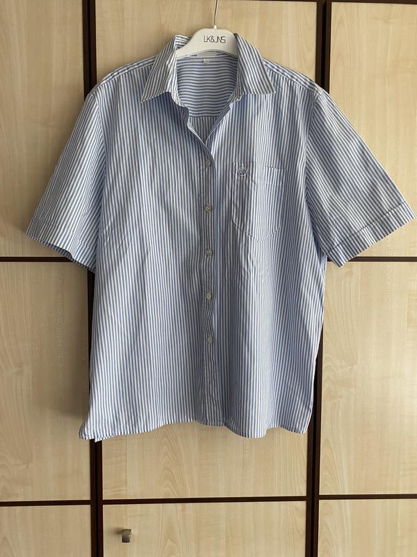 Сорочка з бавовни в блакитну смужку. Довжина 73 см, рукав 30 см, по гоуді 60 см, н низу 57 см