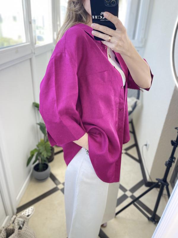 Укорочена сорочка sinsay з драпіруванням кроп топ фуксія ліловий пурпур бавовна поплін
