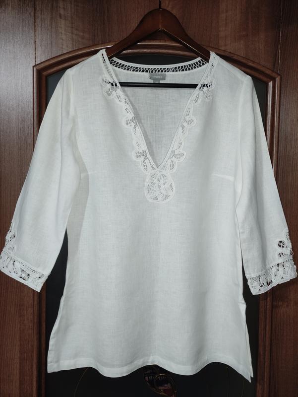 Білосніжна льняна сорочка / блуза з мереживом lindex (100% льон, мереживо)