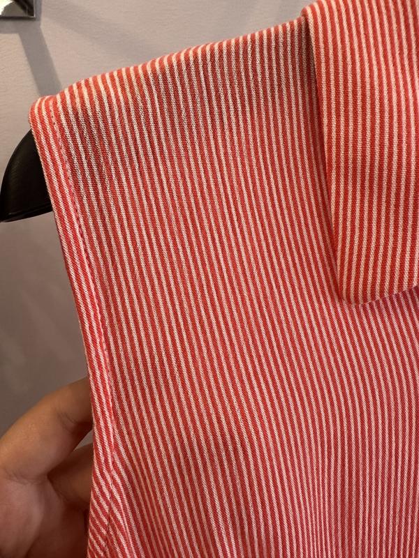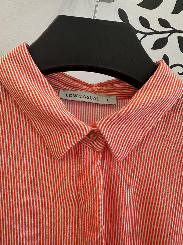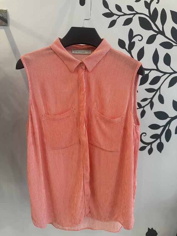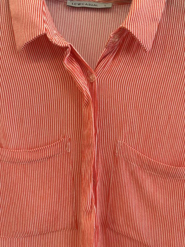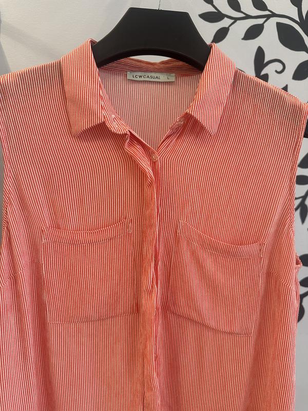 Сорочка без рукавів, з потаємними ґудзиками, також є дві функціональні кишені. Позаду трохи подовжена. Чудовий варіант на літо. Червона в тоненьку білу смужку. Бренд lc Waikiki